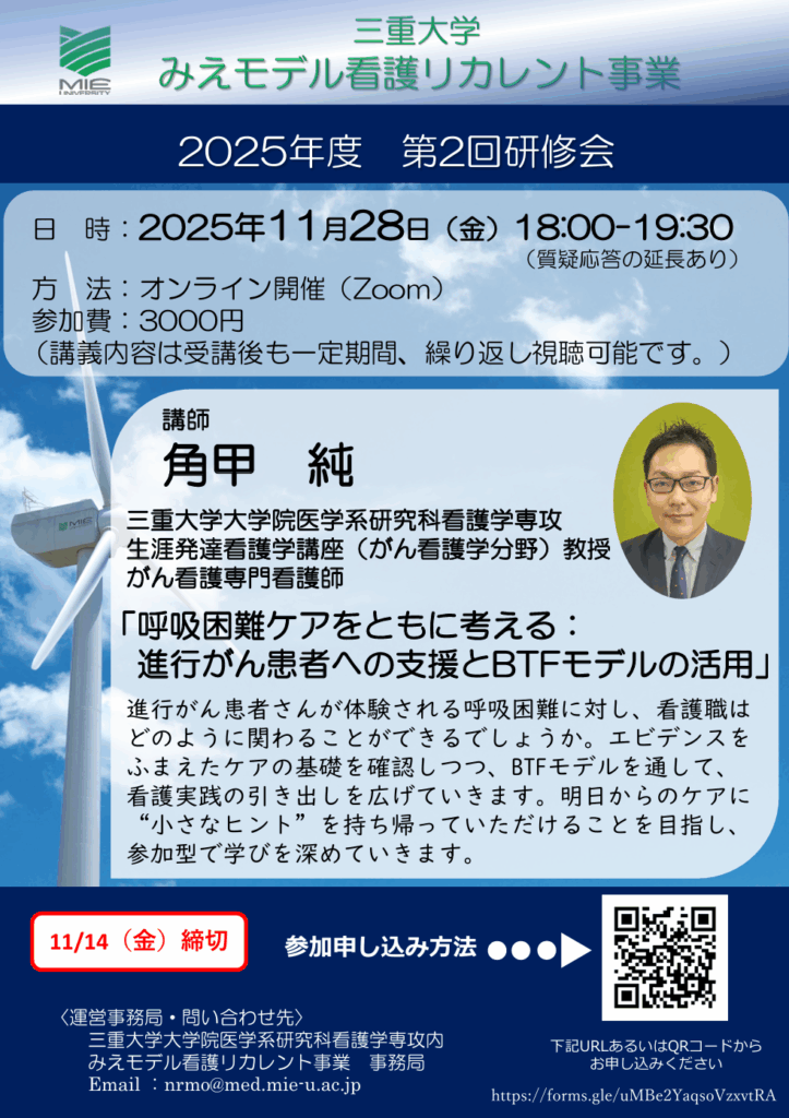 三重大学みえモデル看護リカレント事業 第2回研修会(案内)