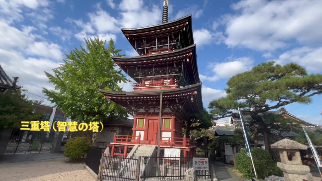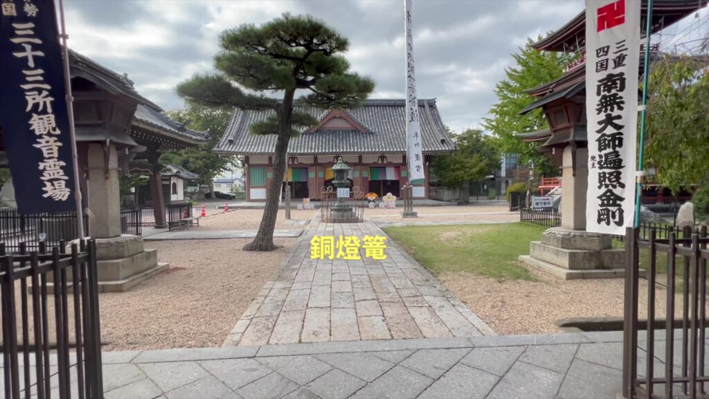 山門(仁王門)は元禄16年(1703年)建立で、昭和57年(1982年)に修理を行い、門の左右には、鎌倉様式の金剛力士像2体が安置され、境内中央には、寛文6年(1666年)に作られた銅燈篭が置かれており、共に三重県指定の文化財に指定されています。平成10年(1998年)に三重塔(智慧の塔)が建てられ、金剛界大日如来、文殊菩薩、普賢菩薩が祀られています。