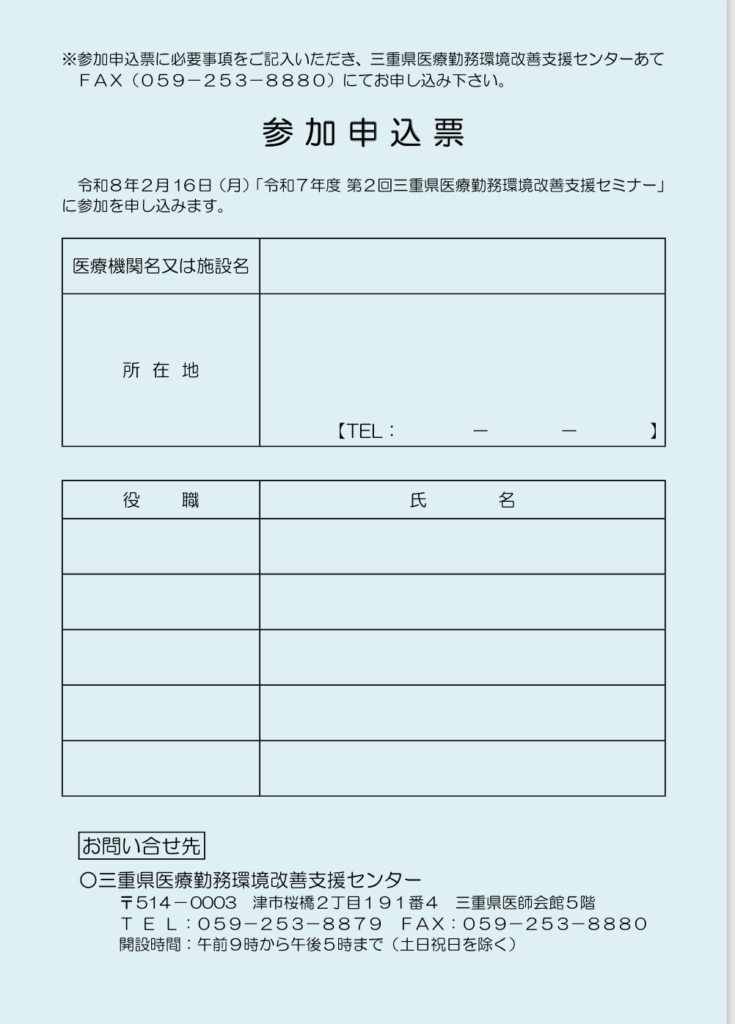 令和7年度 第2回三重県医療勤務環境改善支援セミナー(案内)