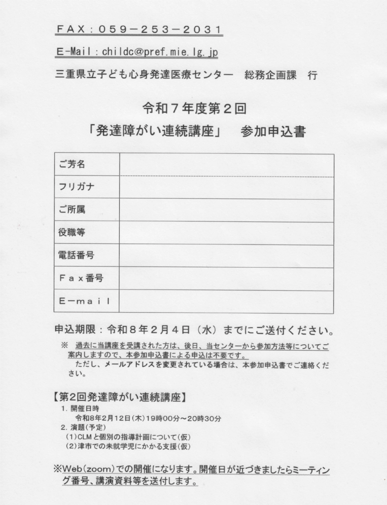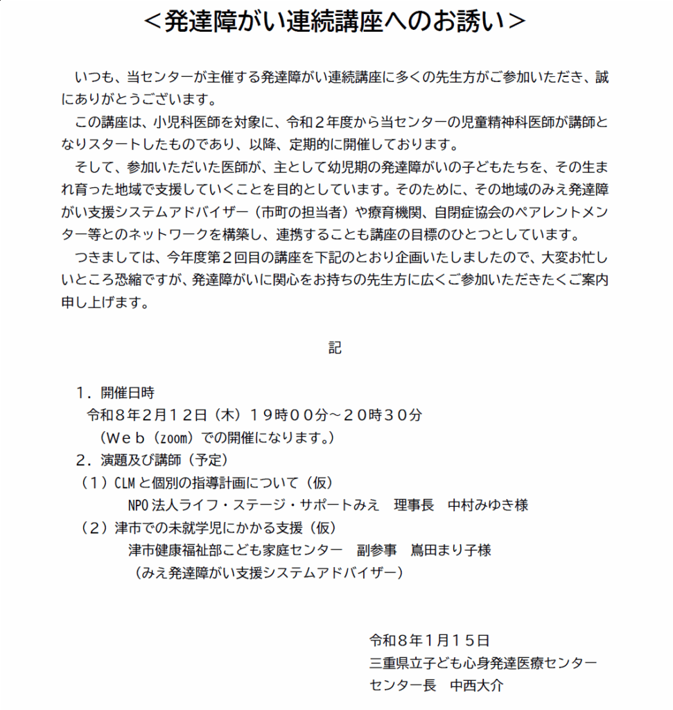 令和7年度第2回発達障がい連続講座の開催(案内)