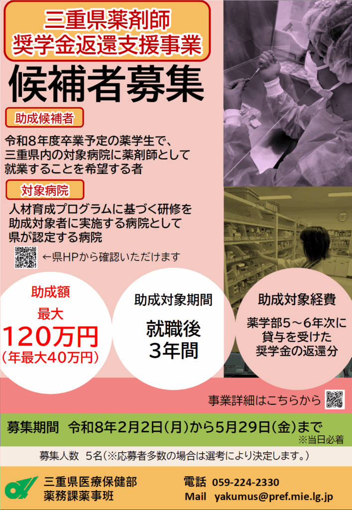 三重県薬剤師奨学金返還支援事業(案内)