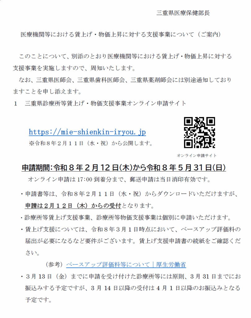 医療機関等における賃上げ・物価上昇に対する支援事業について(案内)