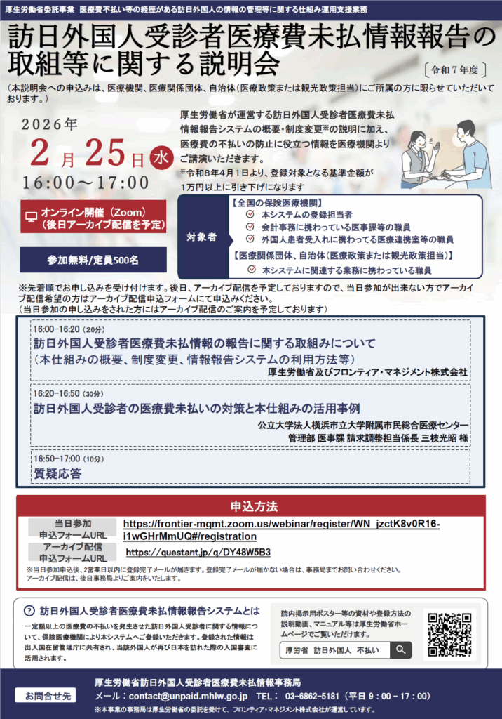 訪日外国人受診者医療費未払情報報告の取組等に関する説明会(案内)